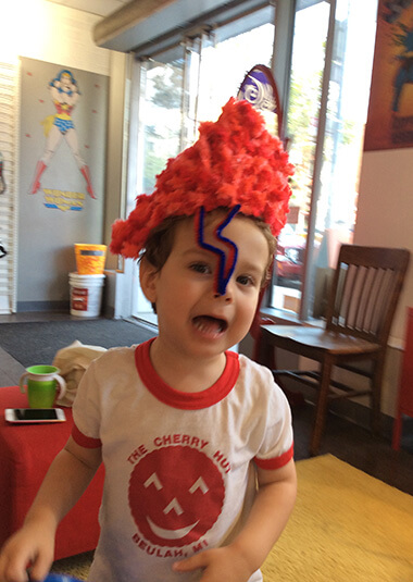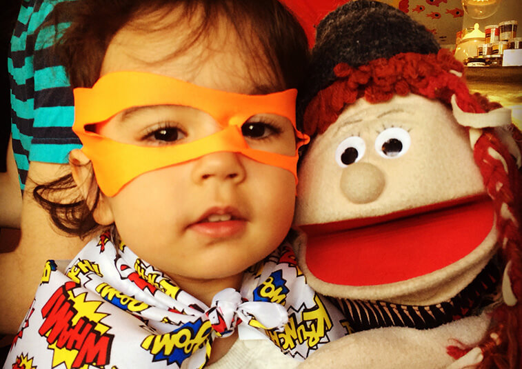 “My son, Levi, has been enjoying puppet shows with Sarah and her creative