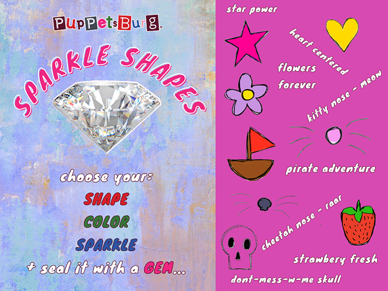 Sparkle Shapes Face Painting imbues simple shapes with meaning and magic. We offer a visual menu of designs custom to each show theme. We dazzle each shape with a sparkle and seal it with a gemstone selected by your munchkin.